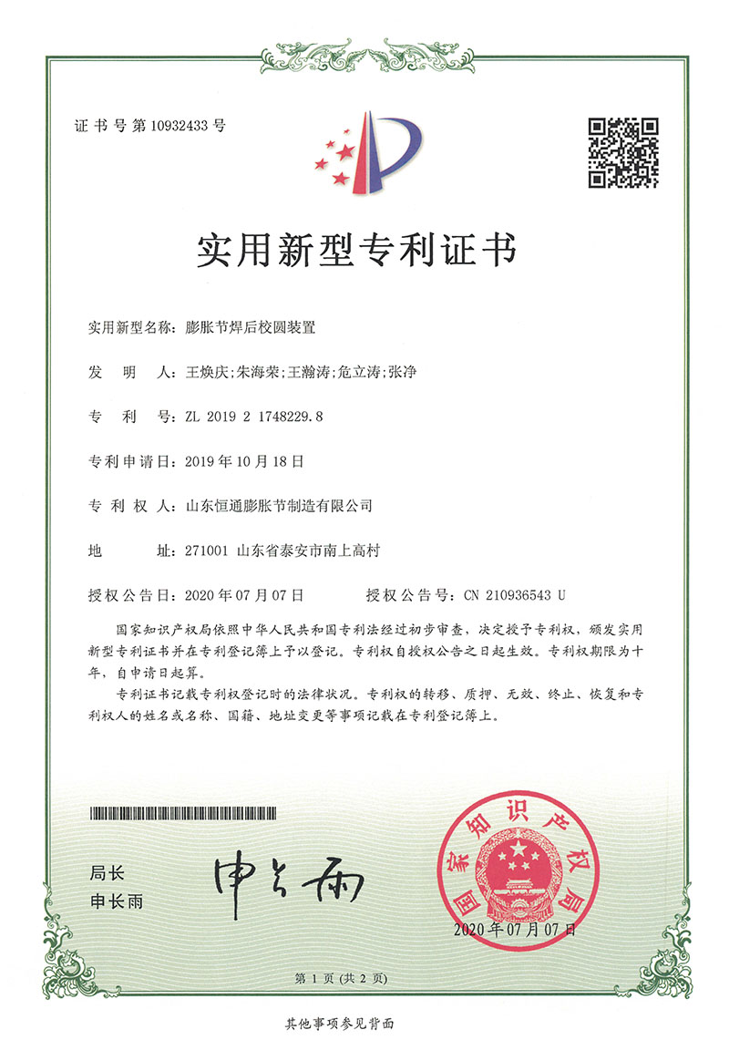 山東恒通膨脹節制造有限公司是一家集研發、設計、制造、銷售和服務于一體的大型膨脹節制造企業。公司取得我國特種設備制造許可證、壓力容器A1級資質、壓力管道元件A、B的資質,并且獲得了歐盟PED-CE認證、美國ASME“U”鋼印、ISO 9000質量管理體系認證、GB/T 14000 環境管理體系認證及GB/T 45000 職業健康安全體系認證。膨脹節產品涵蓋壓力管道波紋膨脹節、壓力容器波形膨脹節、金屬波紋管、金屬軟管...